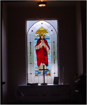 Altar Stained Glass window -- is a special re-production of the Original Stained Glass window. The Original is in the United Church, Texada Island. The beautiful Re-production was made and designed by the residents of the Agassiz Prison and was put in place above the altar, on May 28th 2004